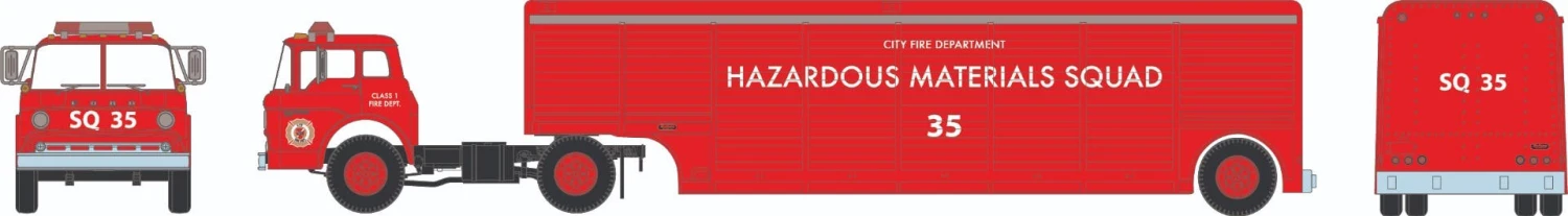Athearn 92464 HO Ford C Tractor With Trailer City Fire Department SQ-35